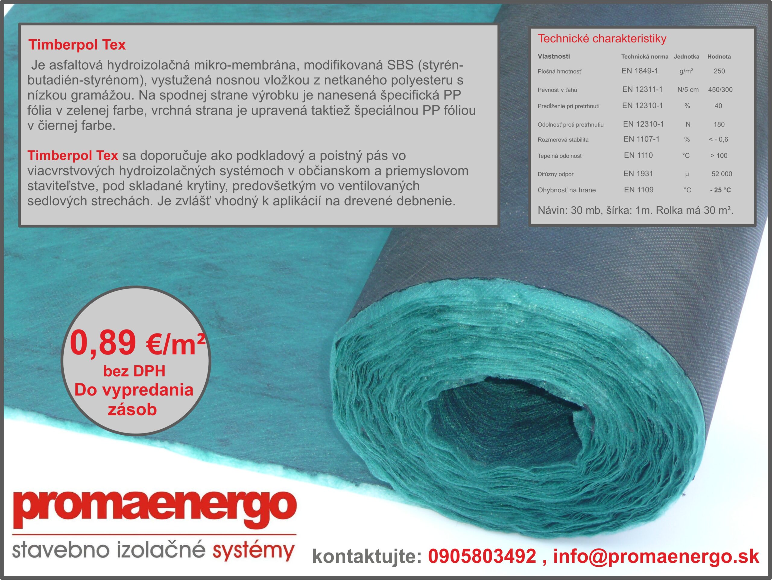 Timberpol Tex sa doporučuje ako podkladový a poistný pás vo viacvrstvových hydroizolačných systémoch v občianskom a priemyslovom staviteľstve, pod skladané krytiny, predovšetkým vo ventilovaných…