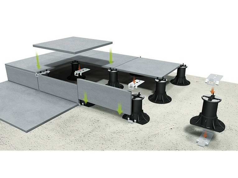 Podkládky H12, H15, H20 umožňujú použitie dlaždíc minimálne 10 mm hrubých na premenu rovných strešných plôch na náležite odvodnené, vetrané a vyvýšené terasy.